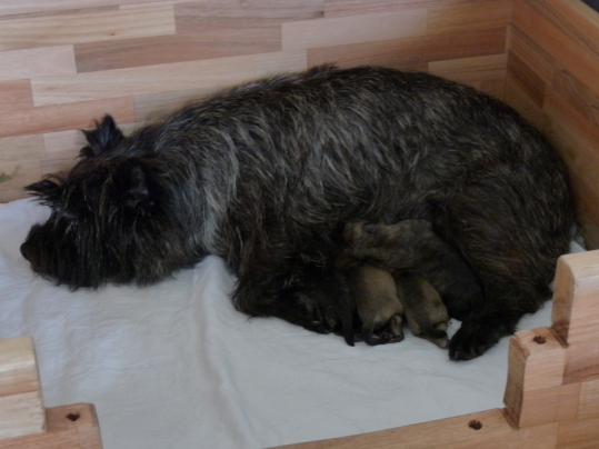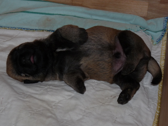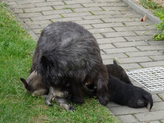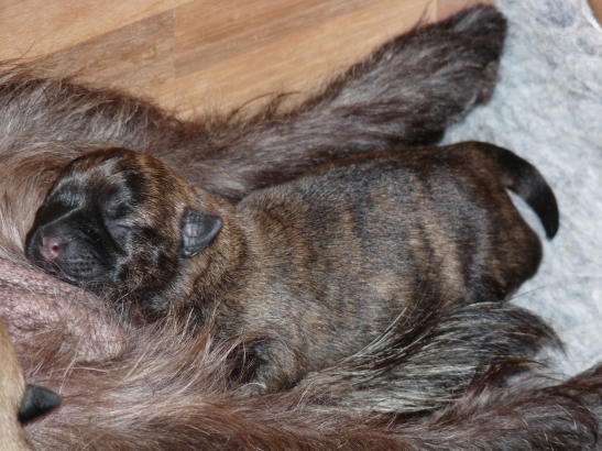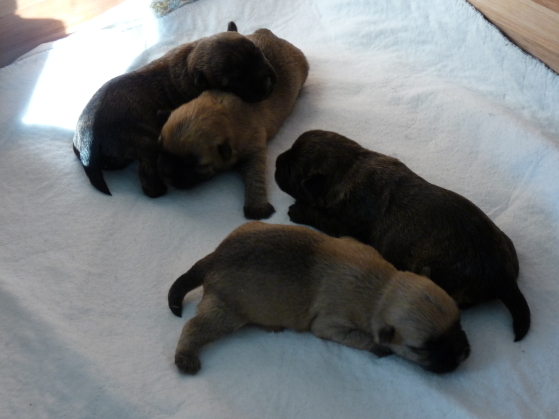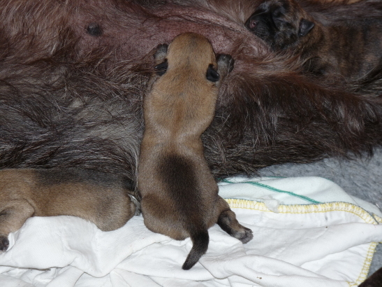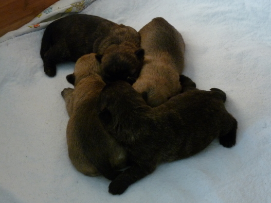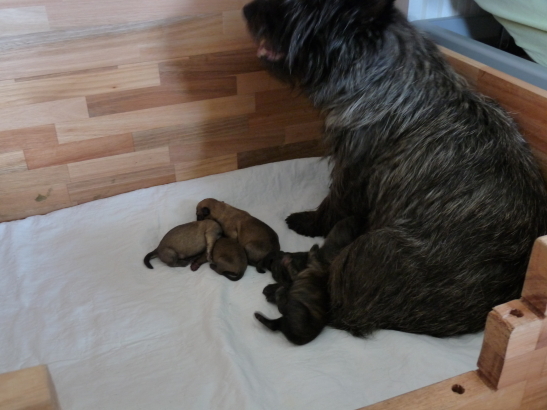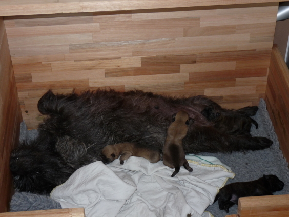 Lindsay mit ihren 5 Welpen einen Tag nach der Geburt. Leider hat es der kleinste Rüde nicht geschafft und ist am Freitag abend verstorben.
